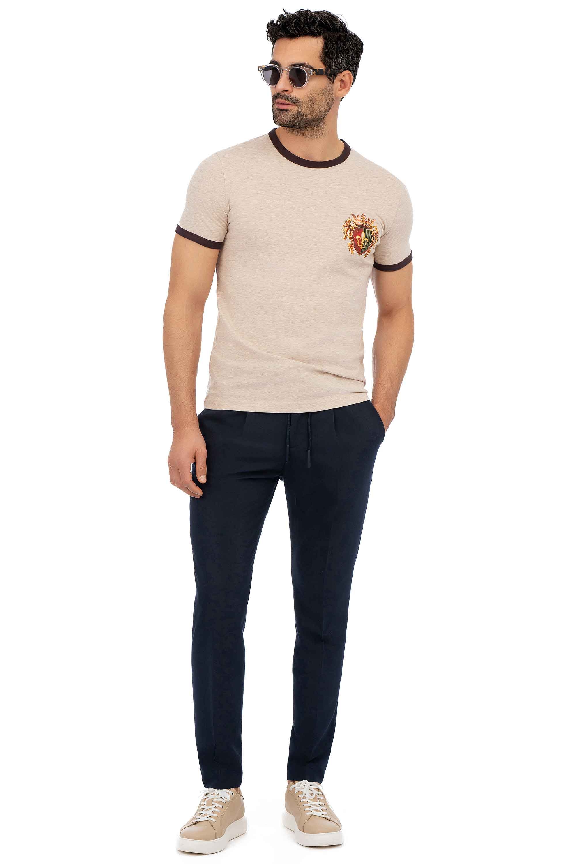 Tricou slim bej guler rotund