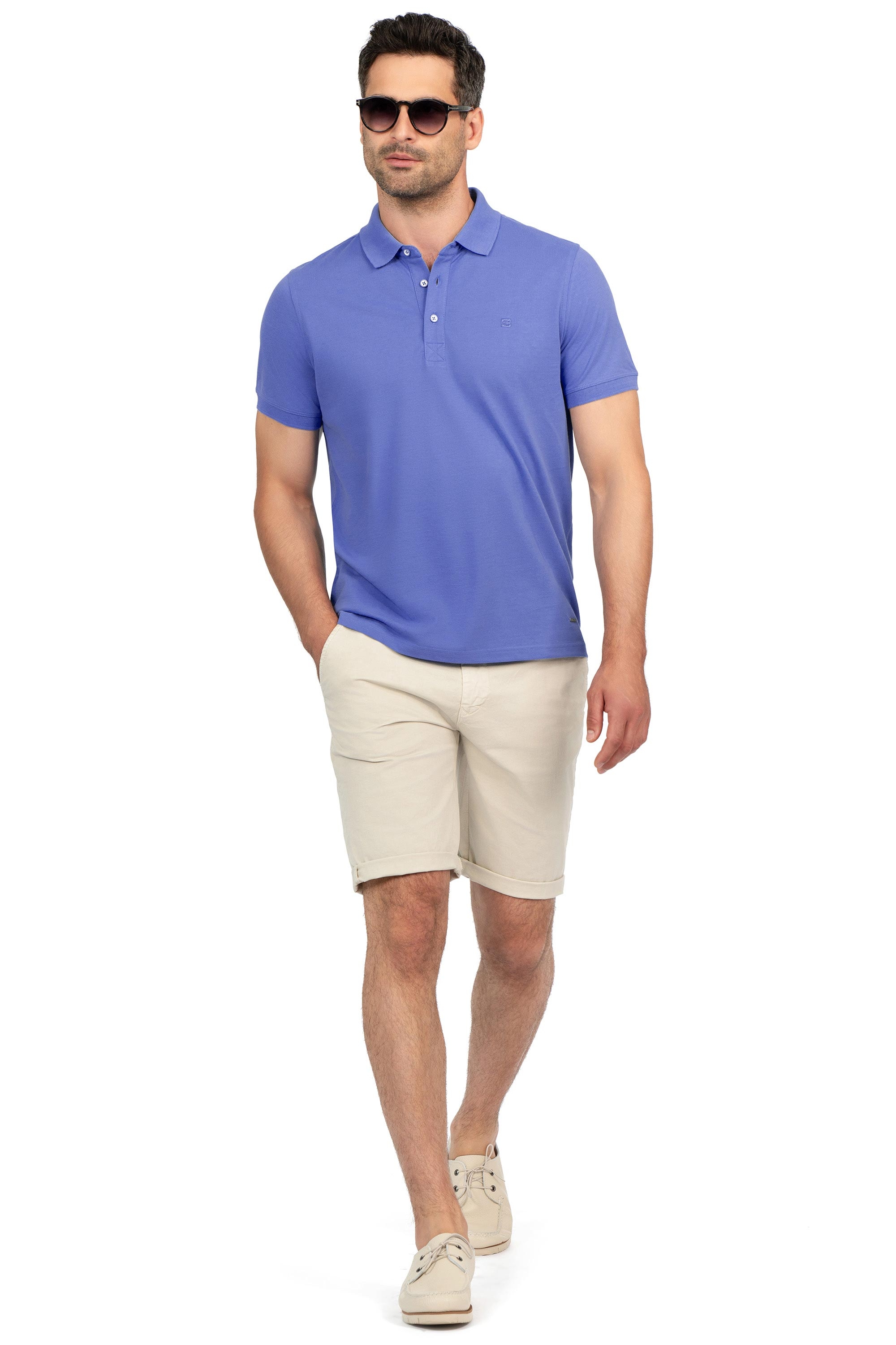Tricou polo slim bleu uni