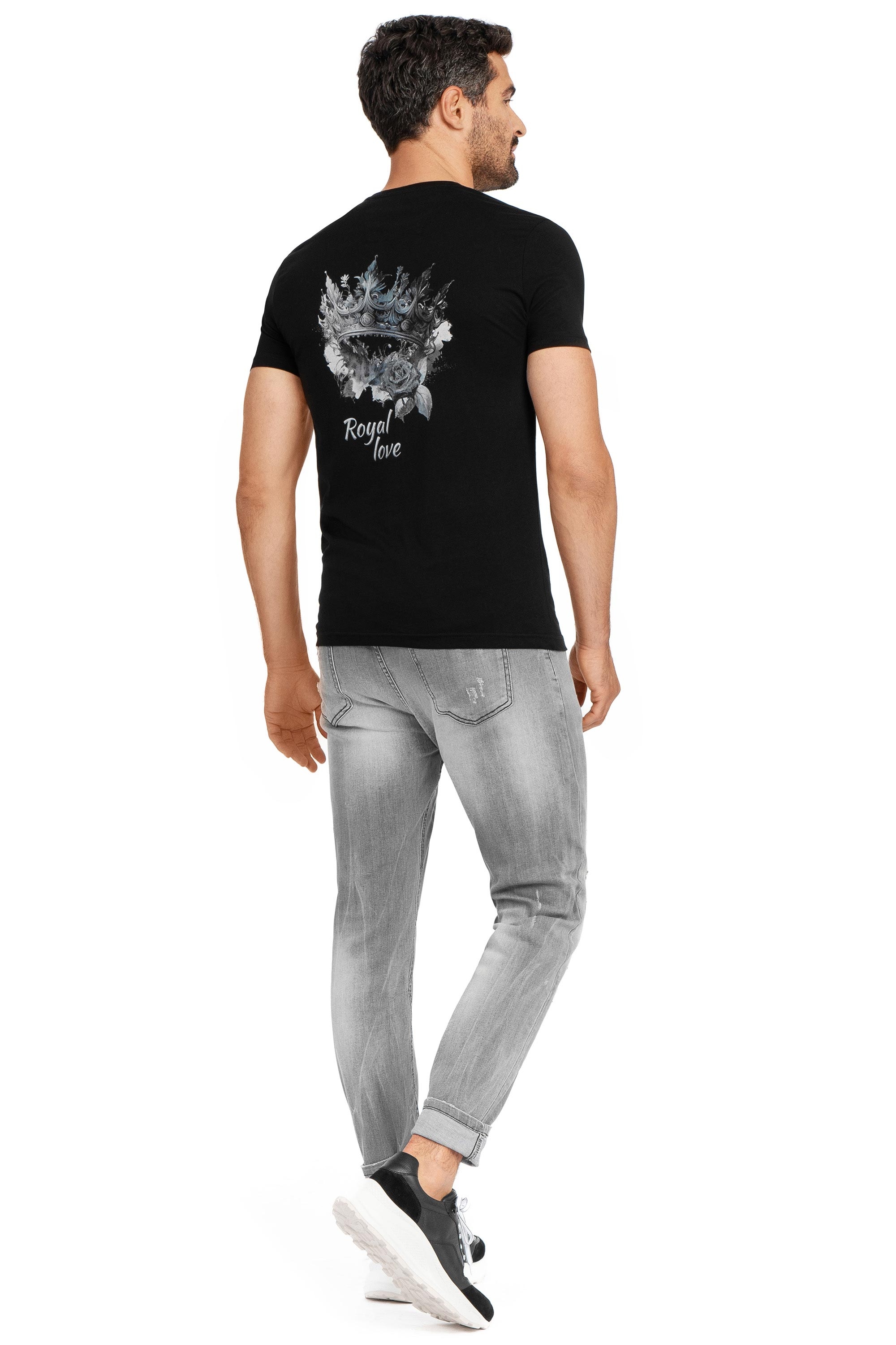 Tricou slim negru print guler rotund