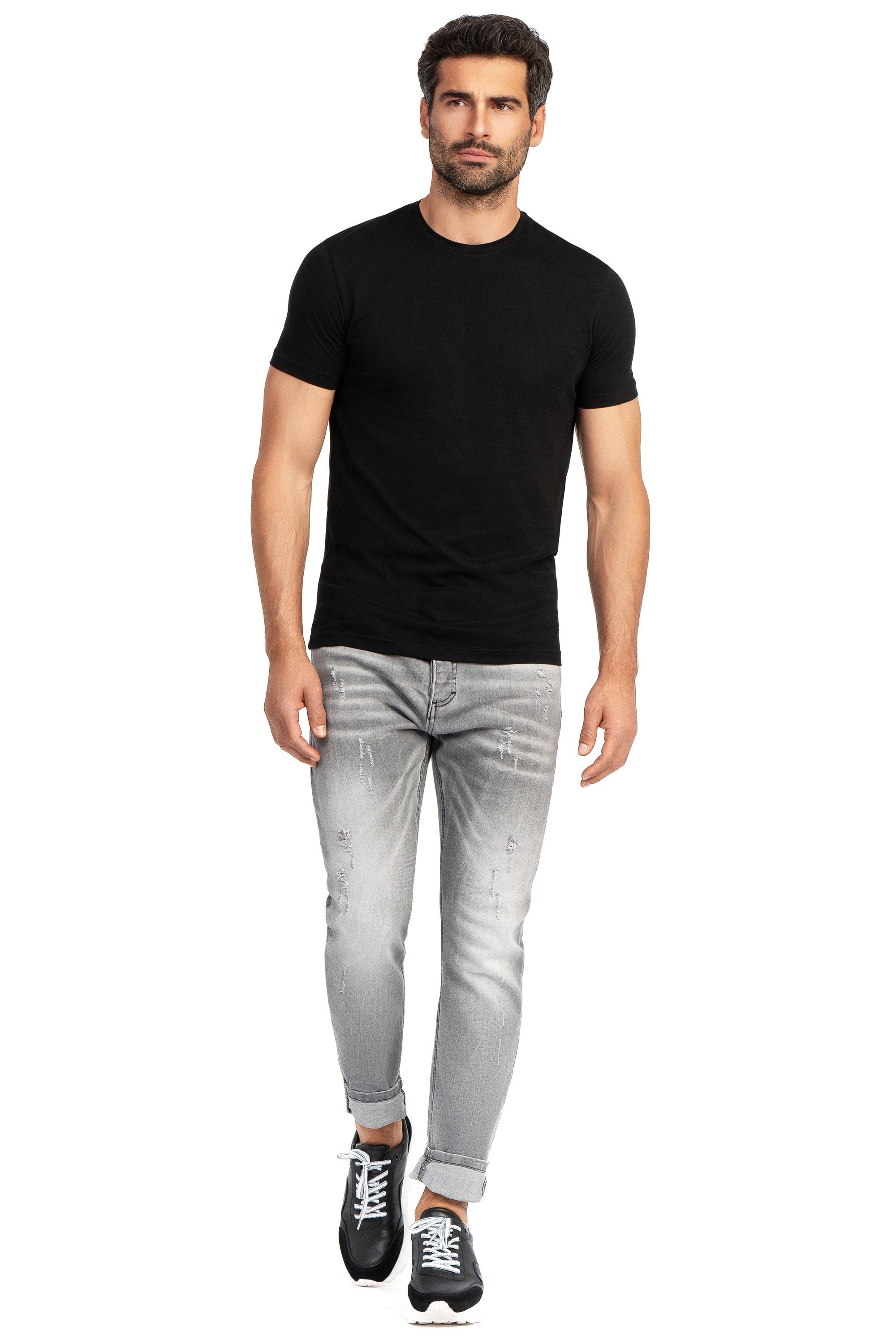 Tricou slim negru guler rotund