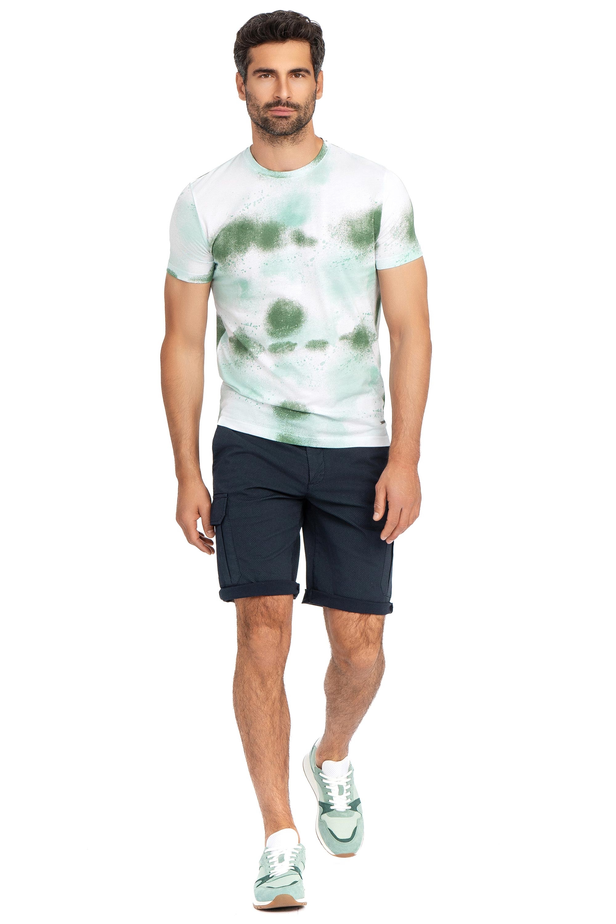 Tricou polo slim verde print geometric