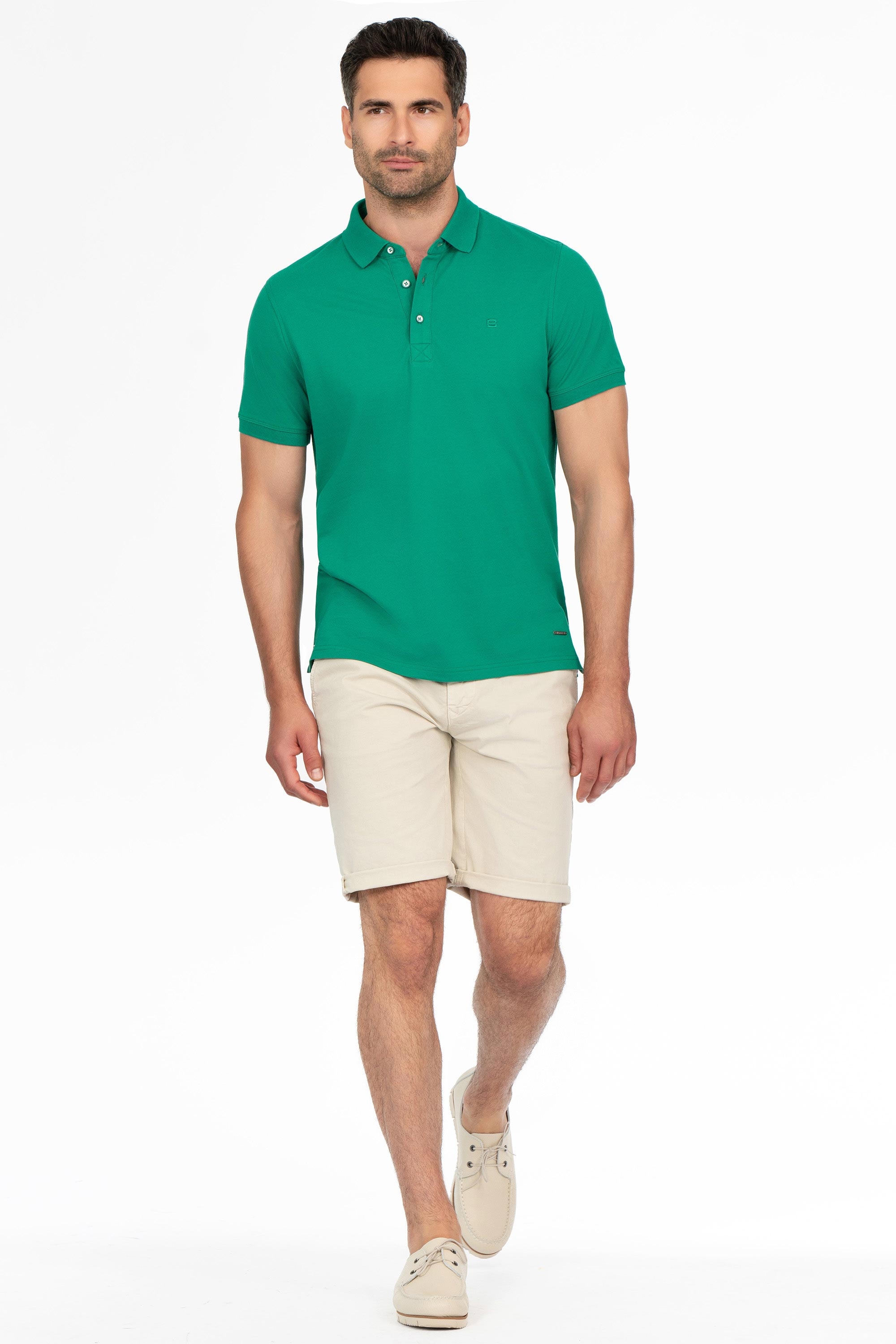 Tricou polo slim verde uni