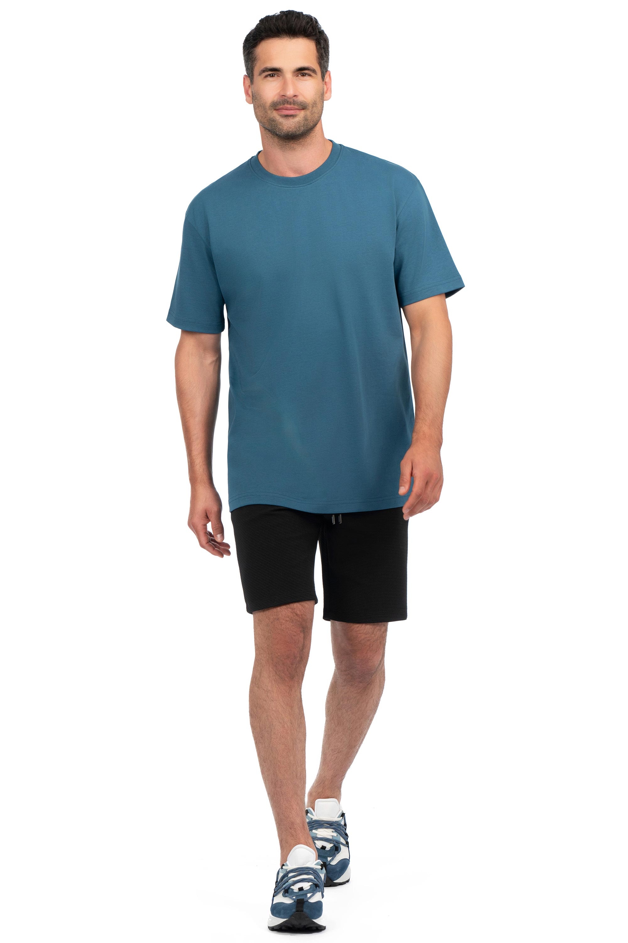 Tricou oversize albastru guler rotund