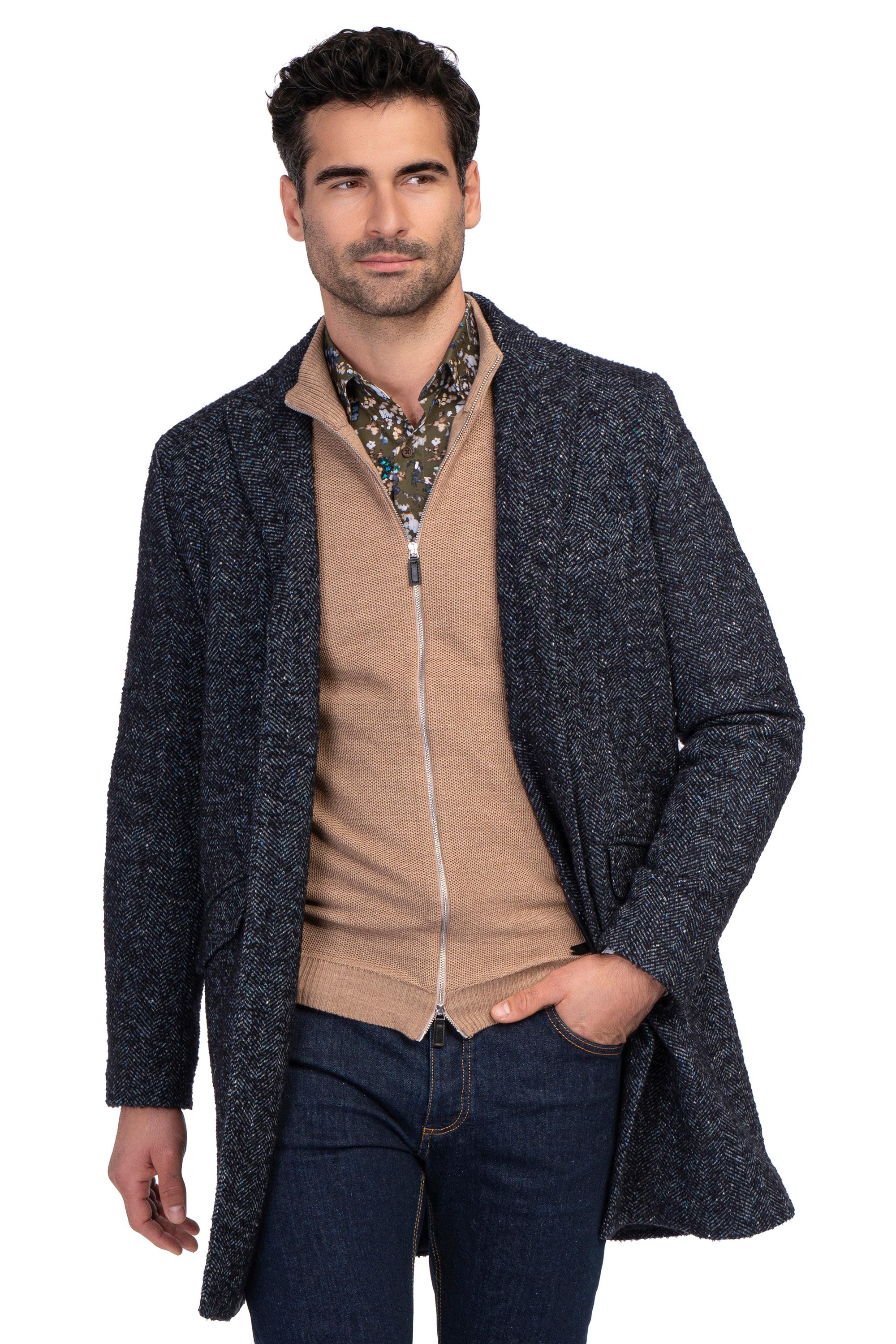 Sacou canaletto bleumarin in carouri